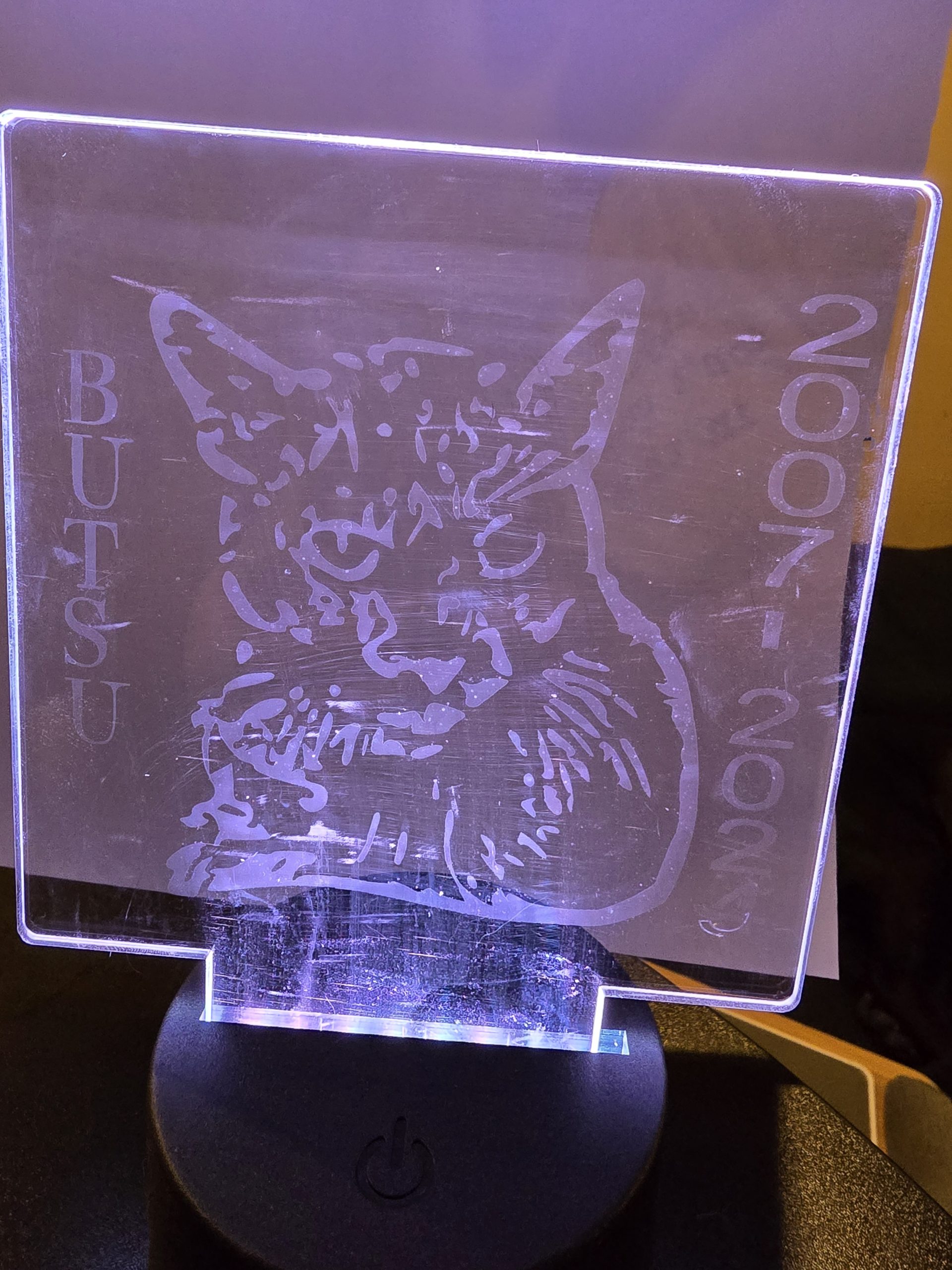 Product can accommodate an SVG image of your pet, the pet’s name, and the year of birth and death year. Please email your engraving request to info@chaliyodesigns.com