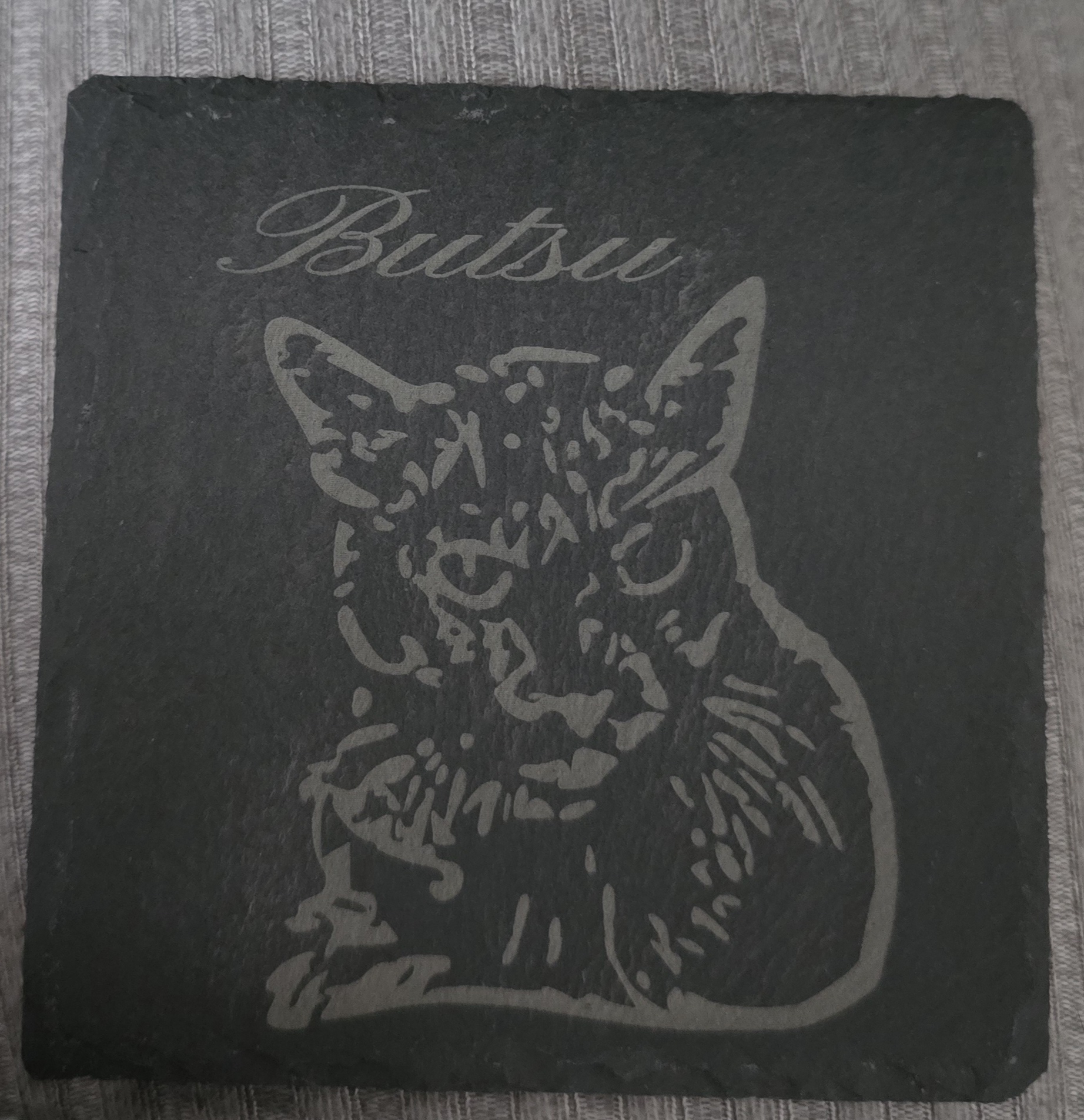Beautiful 4 inch x 4 inch slate coaster engraved with an svg picture of your animal or a paw print. You can even add their name!